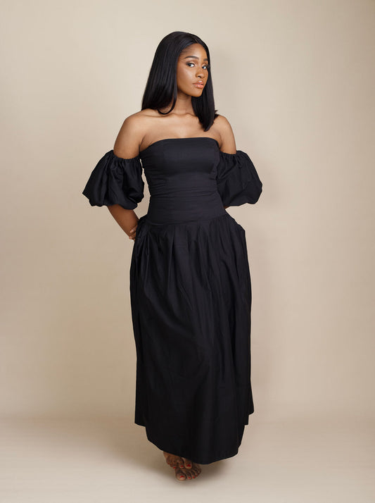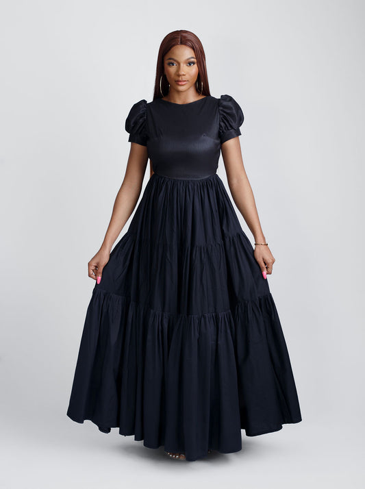 Mary-Anne Gathered Wing Sleeves Maxi Dress